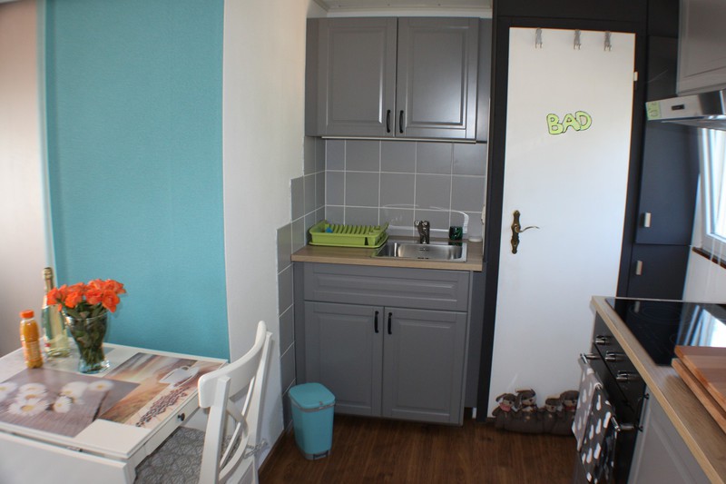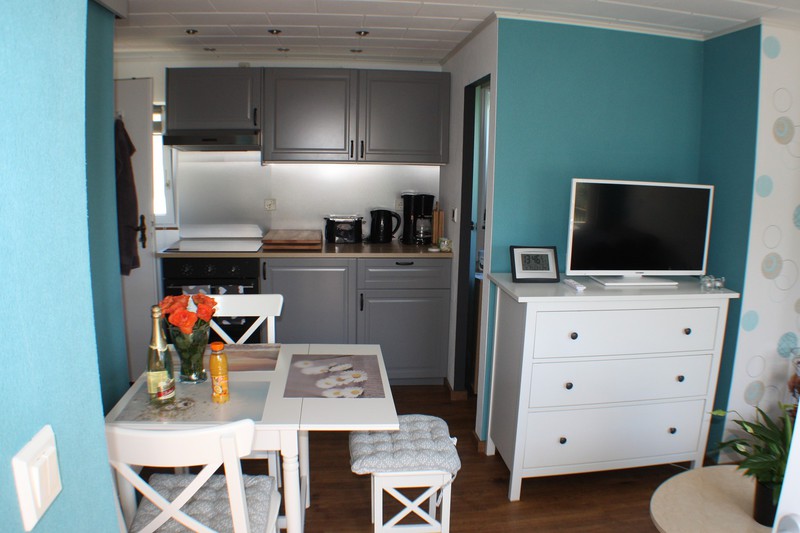 Das separate Badezimmer ist mit Dusche und WC ausgestattet. Alle Räume sind komplett gefliest, im Wohnbereich sorgt eine Fußbodenheizung, im Bad eine Infrarotheizung für angenehme Wärme.
