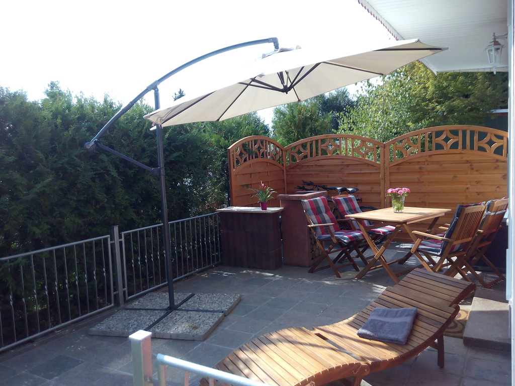 überdachte Terrasse mit Sitzgruppe für 4 Personen