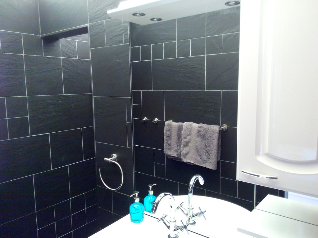 Fußbodenheizung im Wohnbereich, Infrarotspiegelheizung im Bad
